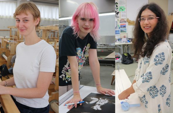 多摩美術大学生産デザイン学科テキスタイルデザイン専攻、2025年度後期の交換留学生を紹介します。 Claire Marion MAURICEさん(国立高等装飾美術学校)、Amrita DUTTAさん(ナショナル・インステ…